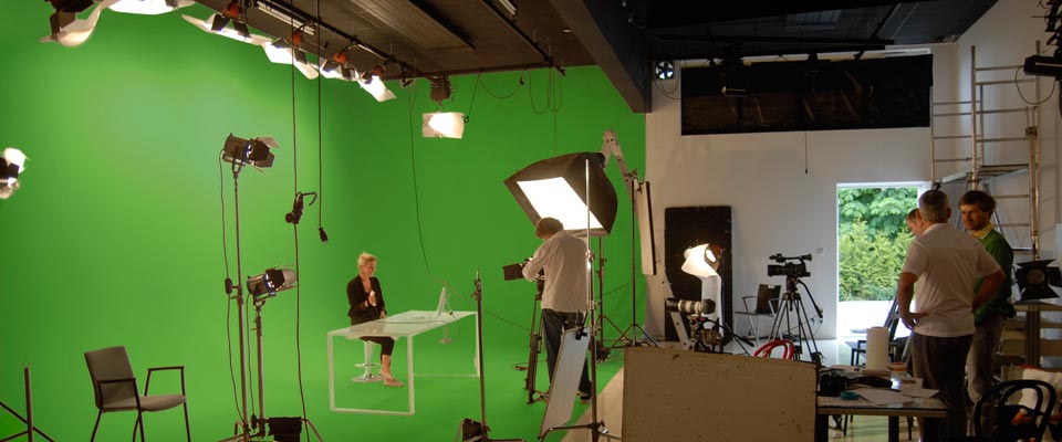 - Deckenschienensystem im gesamten Studioraum mit Richter Setlight-Profiblitzgeräten funkferngesteuert